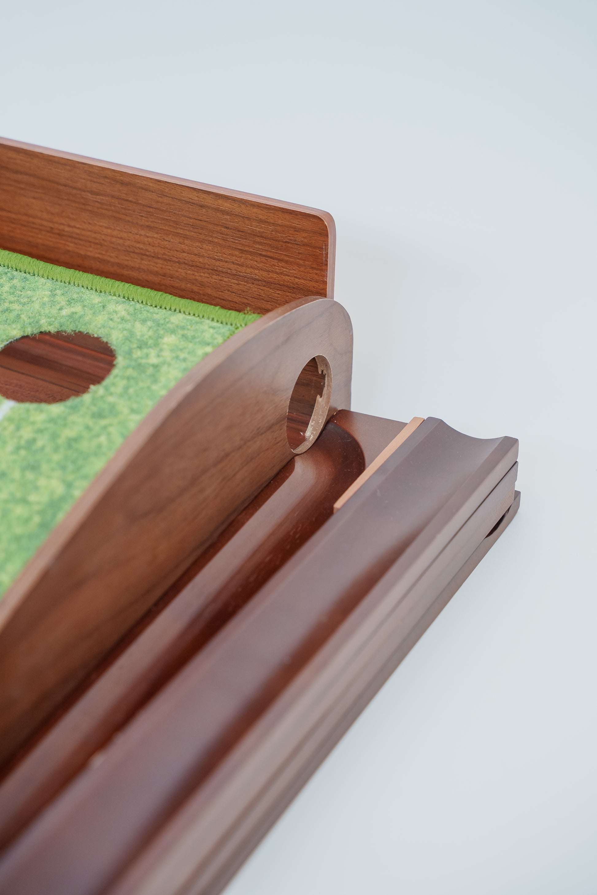 Den solide base i ægte træ løfter designet til et premium niveau, der passer perfekt ind i hjemmet eller på kontoret. Resultatet er et elegant træningsværktøj, der gør det nemt at tage mange gentagelser og bygge den selvtillid, der sænker flere putts på banen.